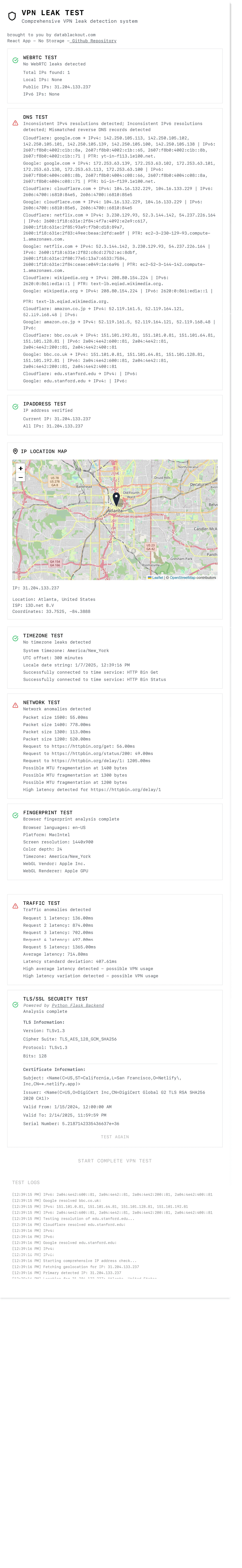 Aqui está um teste de vazamento da VPN do servidor ATL feito pelo meu testador de vazamento: